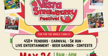 Vista Strawberry Festival May 24, Sunday, 8am-6pm The Vista Strawberry Festival returns to historic downtown Vista on Sunday, May 24 from 8:00 a.m. to 6:00 p.m. There are activities for all ages to...