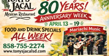 Tony’s Jacal Celebrates 80th Anniversary Week, Solana Beach April 13-19 Tony’s Jacal, one of San Diego’s oldest, and historic Mexican restaurants, since 1946, invites everyone to their 80th...