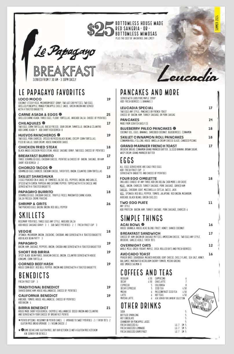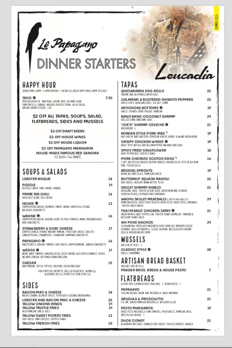 Le Papagayo has 4-5 star ratings on Yelp, OpenTable, and Tripadvisor and are recent winners of OpenTable Diners’ Award. Open for breakfast, try their eggs, omlettes, acai bowls, fresh fruit, pancakes, chicken fried steak, or their signature Loco Moco. Their lunch and dinner menu rocks and so does their Happy Hour menu with new specialty cocktails and food and drink specials every day from 4-6pm and on Tuesdays all night long! Their Wagyu Burger and Pulled BBQ Pork are amazing and so are their Ahi Poke and Spring Rolls. Other favorites include Carne Asada, Duck Confit, Mahi Mahi and Shrimp Tacos. Their Happy Hour menu and regular menus offer a variety of quality, tasty and healthy items, and will surely have something perfect for you. They’re open daily for breakfast, lunch and dinner until 11pm.