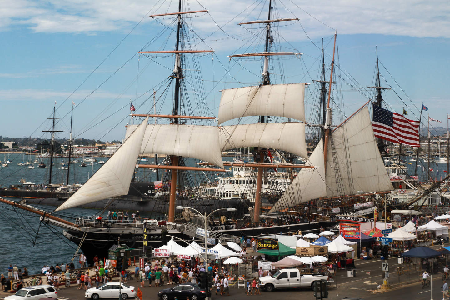 Lovers of storytelling and maritime history will be delighted with the preservation and presentation of these 16th, 18th and 19th century vessels and nested exhibits. The non-profit 501c3 Maritime Museum of San Diego is located in downtown San Diego between Grape and Ash Street at 1492 N. Harbor Drive, San Diego, California 92101. The Museum is open daily from 10:00 a.m. to 5:00 p.m. and the last guest may enter and start their tour experience at 4:00 p.m. To find out more information about year-round public events, purchase admission tickets, make reservations to join one of the docent-led tour experiences, public events, narrated bay tours, and sailing adventures, book a charter for your group or reserve a Museum vessel for your special catered event overlooking San Diego Bay, visit sdmaritime.org.