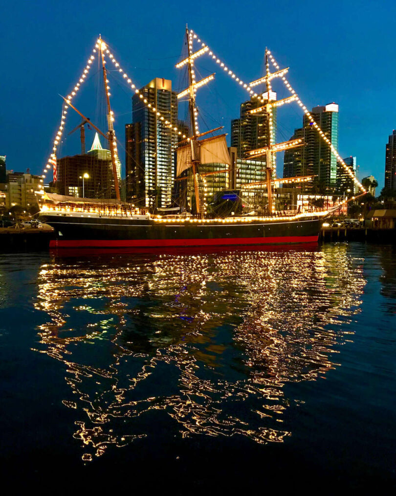The holidays are also a time for entertaining public events at the Maritime Museum. The lineup includes Boarded! Pirate Adventures aboard the galleon replica San Salvador, the India. The Star of India will be adorned in Christmas lights, and the wharf is a grat place to view San Diego’s Parade of Lights. Holiday Dinner and Boat Parade Viewing evenings on available on the McKinney deck of the elegant steam ferry Berkeley.