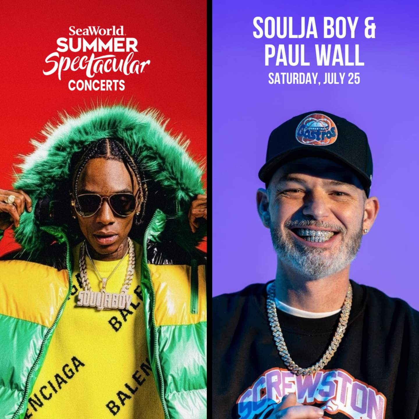 Soulja Boy and Paul Wall, two hip hop hitmakers known for their era-defining tracks and lasting influence. Soulja Boy made music history by clinching the No. 1 spot on the Billboard Hot 100 with his breakout anthem “Crank That (Soulja Boy)”. Joining him is Paul Wall, the Southern rap star celebrated for his signature style and crowd favorite hits like “Sittin’ Sidewayz” and “Grillz.”